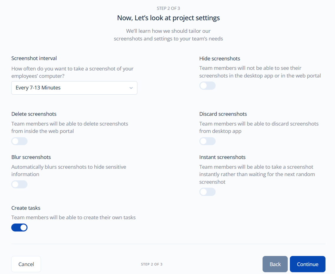 - Turn the Create tasks button if you want employees (team members) to be able to create their own tasks.